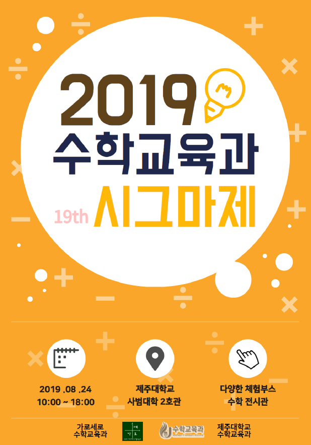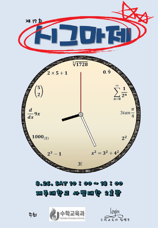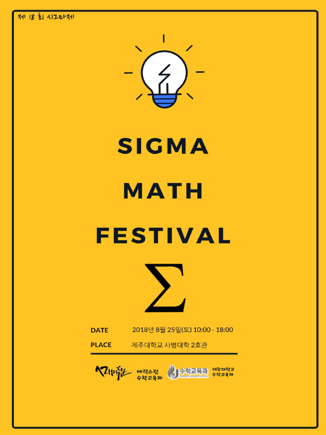 제주대학교 수학교육과 학생회에서 주관하는 시그마제는 도내 초·중·고등학생을 대상으로 매년 11월에 개최하고 있다. 수학적 원리를 체험할 수 있는 프로그램과 조형물 전시 및 포토존을 운영하여 도내 학생들에게 수학에 대한 긍정적인 이미지를 형성함은 물론이고 수학교육과 재학생들이 수학 체험 프로그램을 직접 기획하고 운영해 봄으로써 예비교사의 현장역량 강화에 도움이 된다.